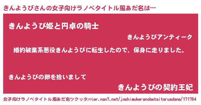 | 男性向けラノベタイトル風あだ名 | 『転生したらきんようびだった件』 |