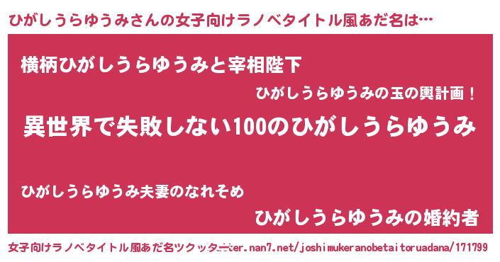 | 胡散臭い通販商品みたいなあだ名 | 『絶対に幸福をもたらす水素水…その名も「ひがしうらゆうみ」』 |