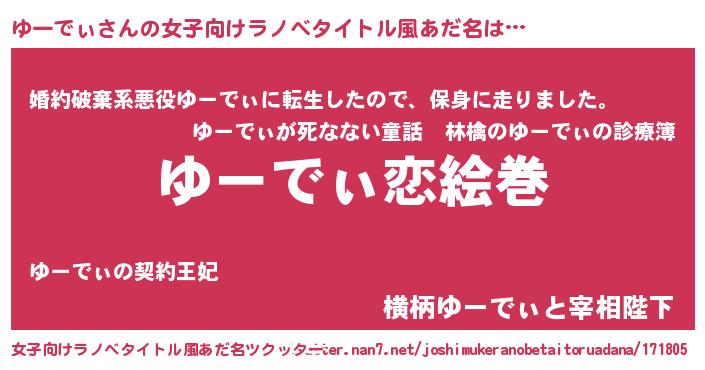 | ファンタジー風あだ名 | 『クインユット』『ユリユーヴァット』 |