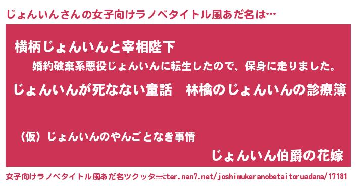 | 胡散臭い通販商品みたいなあだ名 | 『ハリウッド女優が絶賛した100年もののヴィンテージワイン…その名も「じょんいん」』 |