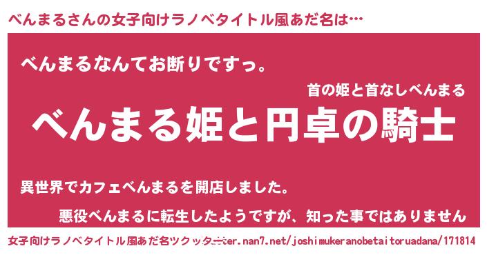 | 男性向けラノベタイトル風あだ名 | 『ベンマルアートオンライン』 |