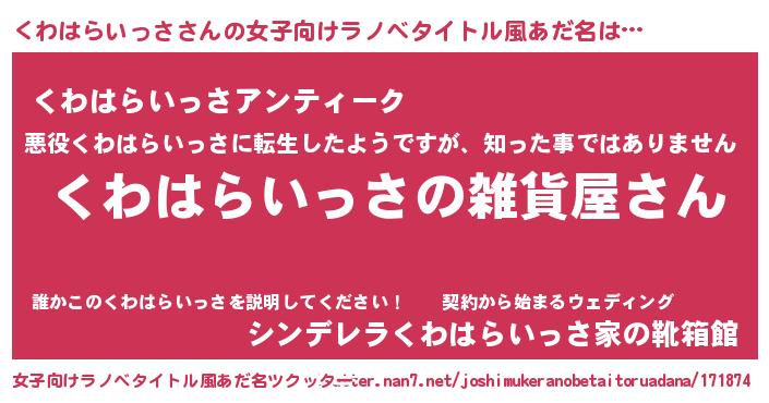 | ヒーロー風カッコイイあだ名 | 『ウルトラくわはらいっさマン』 |