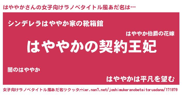 | 意味不明あだ名 | 『永久保存はややか』『自称はややか』 |