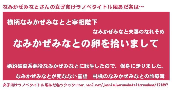| 男性向けラノベタイトル風あだ名 | 『ダンジョンになみかぜみなとを求めるのは間違っているだろうか』 |