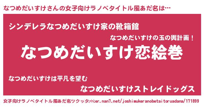 | 男性向けラノベタイトル風あだ名 | 『ノーゲーム・ノーナツメダイスケ』 |