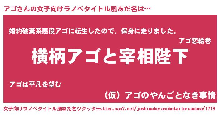 | ヘコむあだ名 | 『アゴにゅー』『アゴっぺ』 |