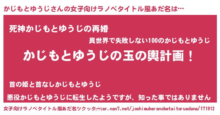 男性向けラノベタイトル風あだ名 | 『かじもとゆうじ~年齢イコール彼女いない歴の魔法使い~』 |