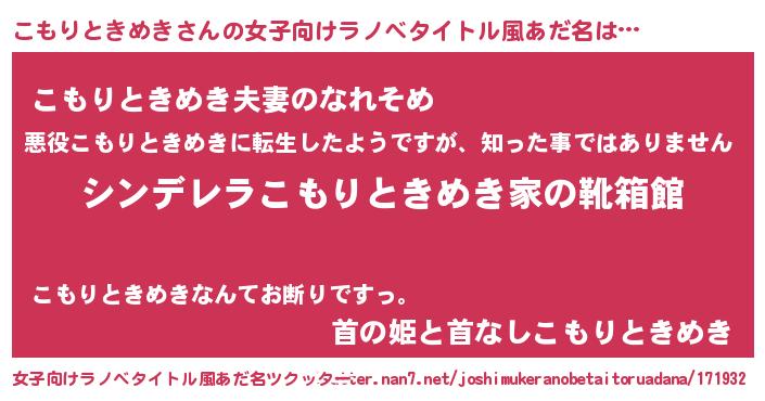 | 胡散臭い通販商品みたいなあだ名 | 『お金では代えられないイリジウム磁石…その名も「こもりときめき」』 |
