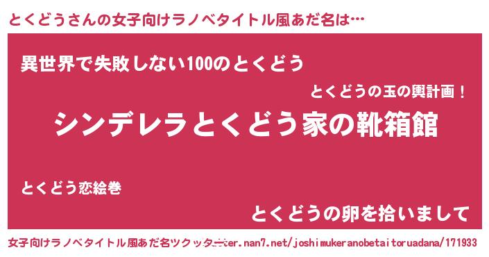 | 胡散臭い通販商品みたいなあだ名 | 『絶対に幸福をもたらす水素水…その名も「とくどう」』 |