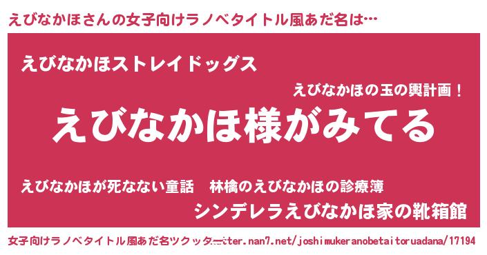 | 男性向けラノベタイトル風あだ名 | 『えびなかほの嫁は女の子じゃないと思った?』 |