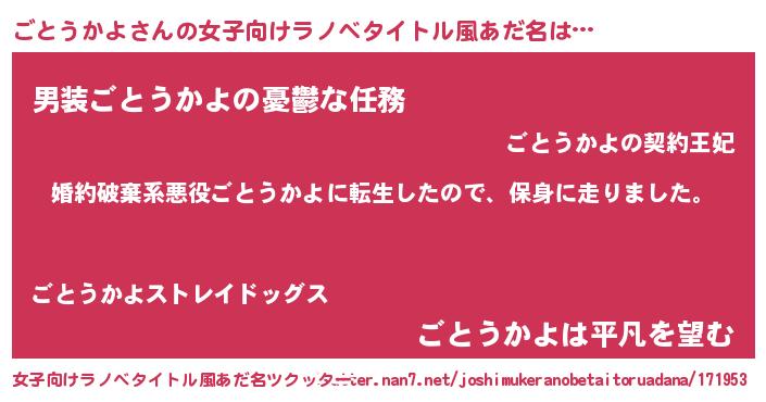 | 男性向けラノベタイトル風あだ名 | 『転生したらごとうかよだった件』 |