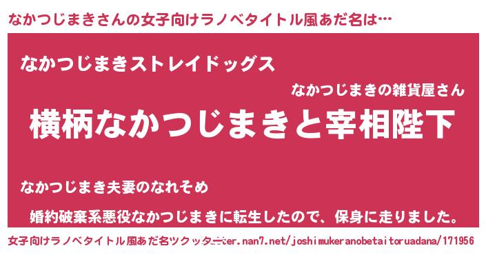 | 男性向けラノベタイトル風あだ名 | 『なかつじまきに滅ぼされるだけの簡単なお仕事です』 |