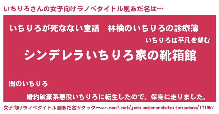 | 胡散臭い通販商品みたいなあだ名 | 『世界中を虜にした100年もののヴィンテージワイン…その名も「いちりろ」』 |