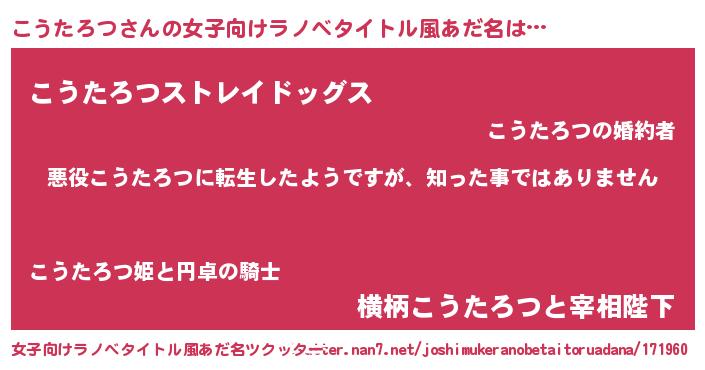 | 男性向けラノベタイトル風あだ名 | 『この素晴らしい世界にこうたろつを!』 |