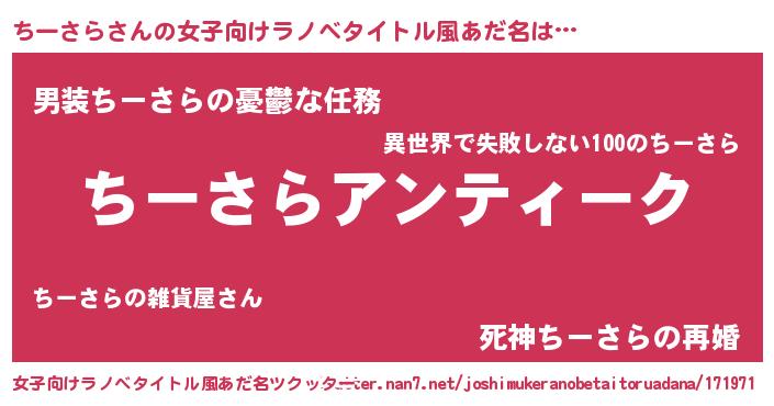 | 男性向けラノベタイトル風あだ名 | 『魔法科高校のちーさら』 |