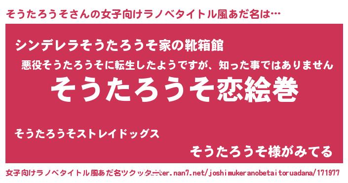 | 男性向けラノベタイトル風あだ名 | 『ノーゲーム・ノーソウタロウソ』 |