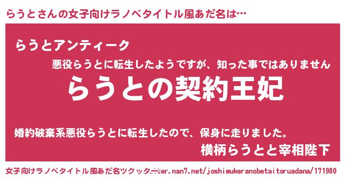 | 意味不明あだ名 | 『永久保存らうと』『自称らうと』 |