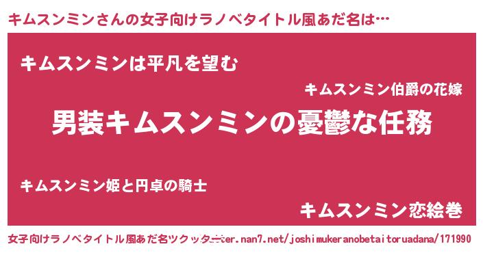 | 男性向けラノベタイトル風あだ名 | 『うちのキムスンミンが世界を掌握している!』 |