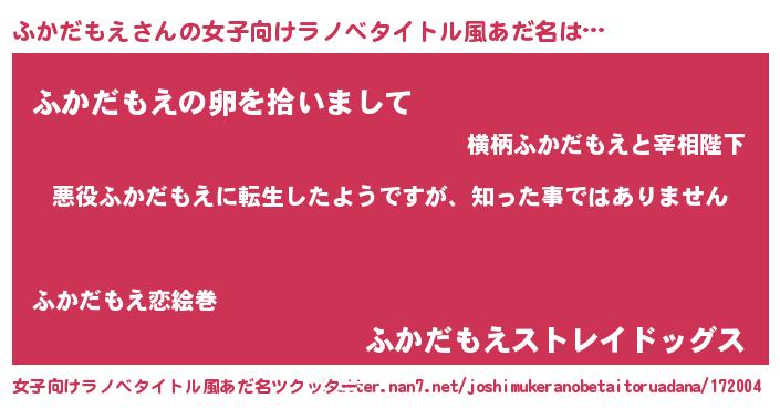 | 意味不明あだ名 | 『住所不定無職ふかだもえ(68歳)』 |