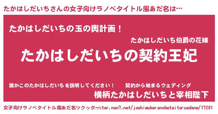 | 意味不明あだ名 | 『永久保存たかはしだいち』 |