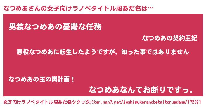 | 男性向けラノベタイトル風あだ名 | 『この素晴らしい世界になつめあを!』 |