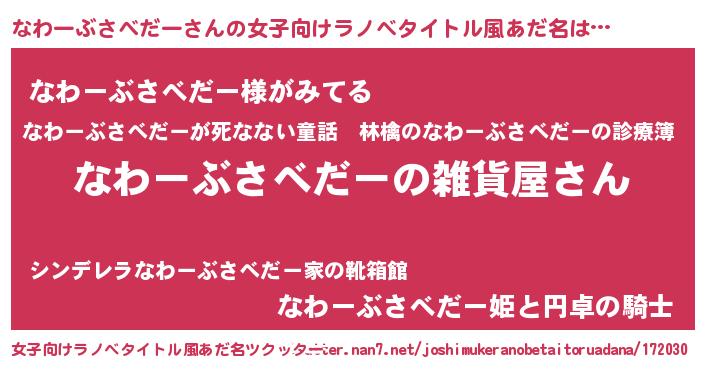 | 欧米人風あだ名 | 『なわーぶさべだークリステル』 |