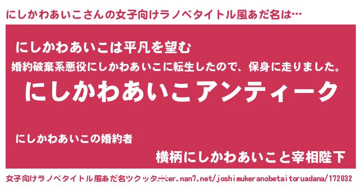 | 意味不明あだ名 | 『自称にしかわあいこ』 |