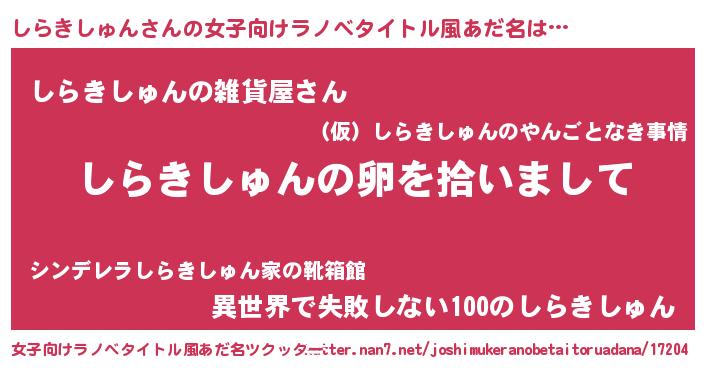 | 料理風あだ名 | 『ポテトとしらきしゅんのキッシュ☆』 |