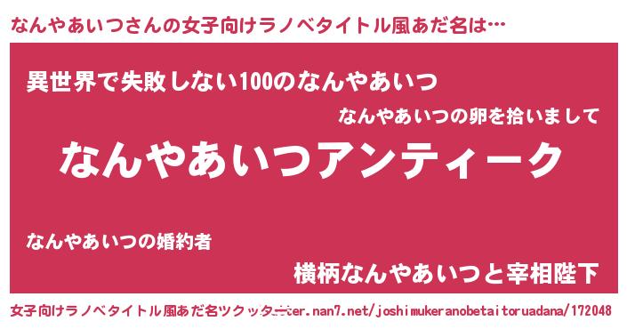 | 男性向けラノベタイトル風あだ名 | 『魔法科高校のなんやあいつ』 |