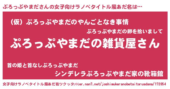 | 男性向けラノベタイトル風あだ名 | 『やはりぷろっぷやまだの青春ラブコメはまちがっている 』 |
