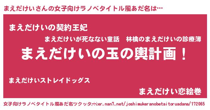 | 胡散臭い通販商品みたいなあだ名 | 『来世でも幸せになれる健康食品…その名も「まえだけい」』 |