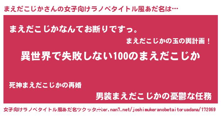 | 胡散臭い通販商品みたいなあだ名 | 『絶対に幸福をもたらす健康食品…その名も「まえだこじか」』 |