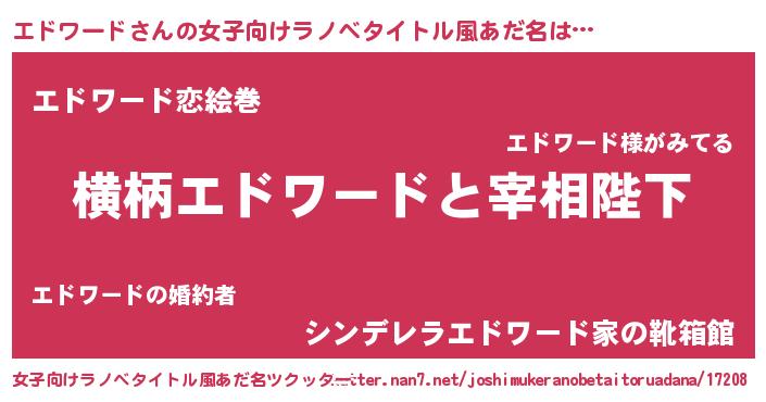 | 男性向けラノベタイトル風あだ名 | 『エドワードに滅ぼされるだけの簡単なお仕事です』 |