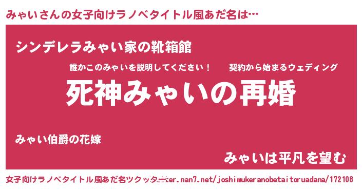 | 伝説のあだ名 | 『救世主となる占い師みゃい』 |