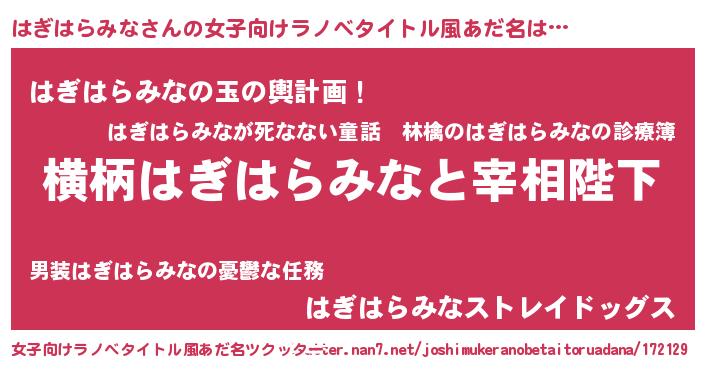 | 胡散臭い通販商品みたいなあだ名 | 『テレビで話題の高麗人参…その名も「はぎはらみな」』 |
