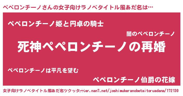 | 男性向けラノベタイトル風あだ名 | 『ノーゲーム・ノーペペロンチーノ』 |