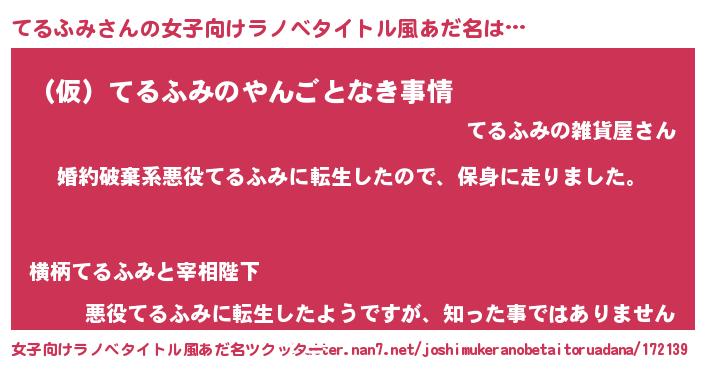 | 男性向けラノベタイトル風あだ名 | 『テルフミスレイヤー』『てるふみの憂鬱』 |