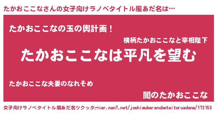 | 男性向けラノベタイトル風あだ名 | 『ダンジョンにたかおここなを求めるのは間違っているだろうか』 |