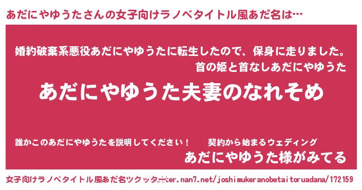 | 胡散臭い通販商品みたいなあだ名 | 『100人中100人が認めたマグネット磁石…その名も「あだにやゆうた」』 |