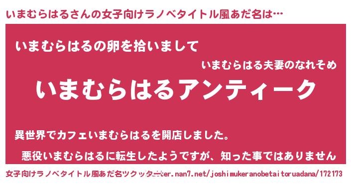 | ヘコむあだ名 | 『いまっ子』『いまむらはる(苦笑)』 |