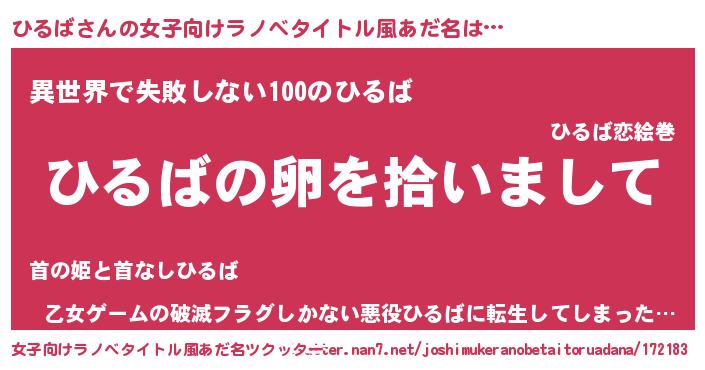 | 胡散臭い通販商品みたいなあだ名 | 『伝統あるネックレス…その名も「ひるば」』 |