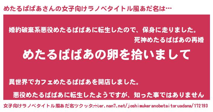 | 意味不明あだ名 | 『とにかく怪しいめたるばばあ』 |