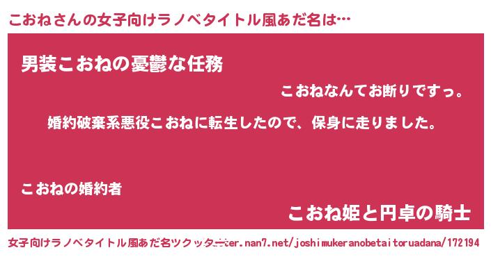 | 胡散臭い通販商品みたいなあだ名 | 『必ず成功するブレスレット…その名も「こおね」』 |
