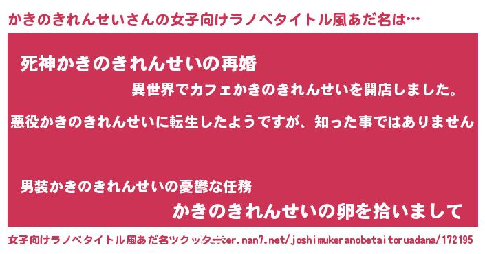 | 男性向けラノベタイトル風あだ名 | 『この素晴らしい世界にかきのきれんせいを!』 |