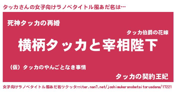 | ヒーロー風カッコイイあだ名 | 『慈愛の使者タッカ』『ネオタッカ』 |