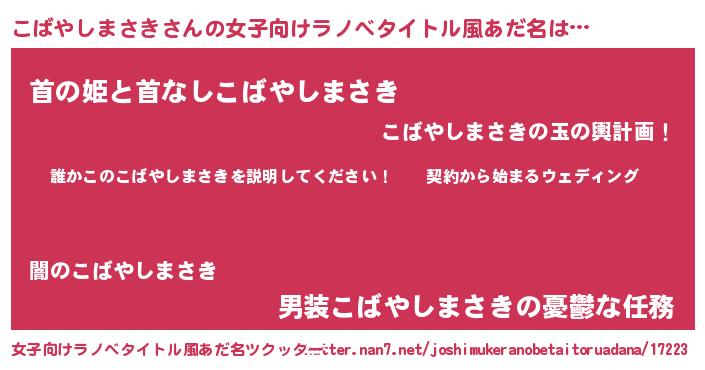 | 男性向けラノベタイトル風あだ名 | 『コバヤシマサキアートオンライン』 |