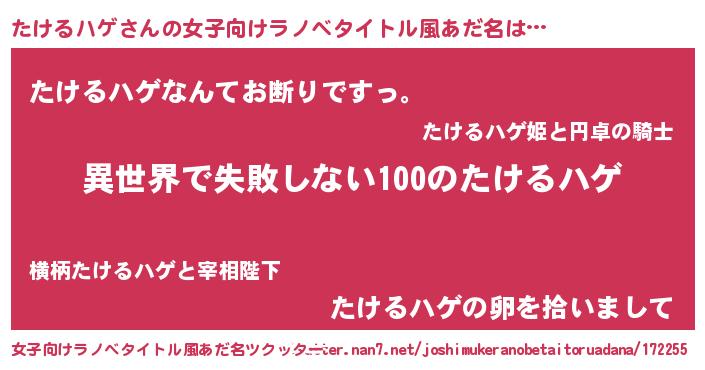| 意味不明あだ名 | 『永久保存たけるハゲ』『自称たけるハゲ』 |