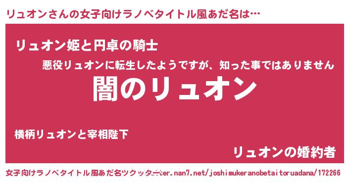 | 男性向けラノベタイトル風あだ名 | 『Re:リュオンから始める異世界生活』 |