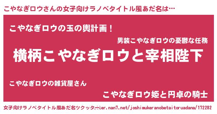 | 男性向けラノベタイトル風あだ名 | 『こやなぎロウに滅ぼされるだけの簡単なお仕事です』 |
