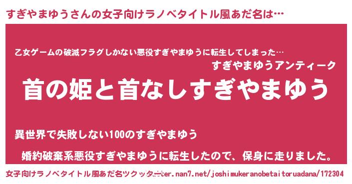 | 胡散臭い通販商品みたいなあだ名 | 『ハリウッド女優が絶賛した100年もののヴィンテージワイン…その名も「すぎやまゆう」』 |